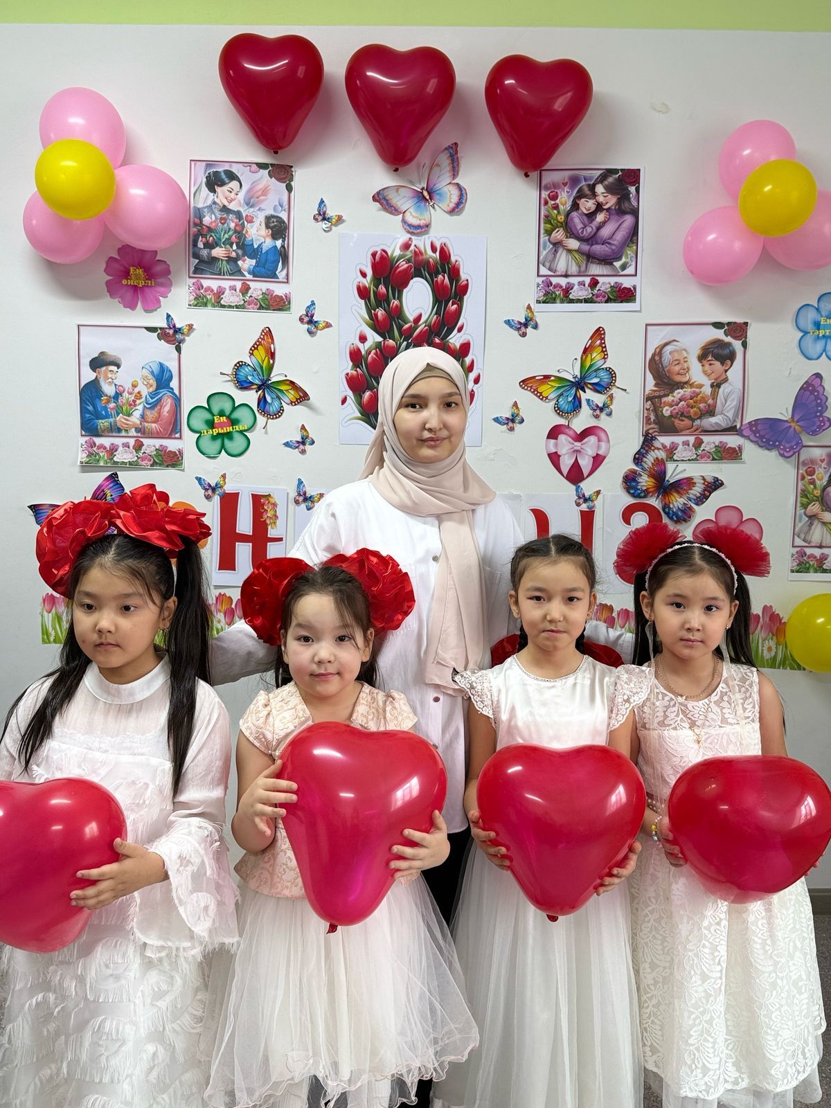 "Мирас" бастауыш мектебінің құрылтайшысы Калиева Гулбану Мақсатқызы ұжымдағы қыздарды көктемнің шуақты мерекесі 8 наурыз Халықаралық әйелдер күнімен құттықтап, жылы лебізі мен тілегін айтып, гүл шоқтарын тарту етті.