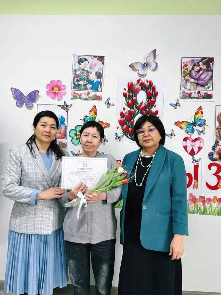 Мектеп директоры Колганатова Рзагул Достановна мектебіміздің тазалықшысы әрі қамқор әже Күміс Елубаевнаны мерекемен құттықтап, Ақтөбе қаласы білім бөлімі басшысының Алғыс хатын табыс етті.